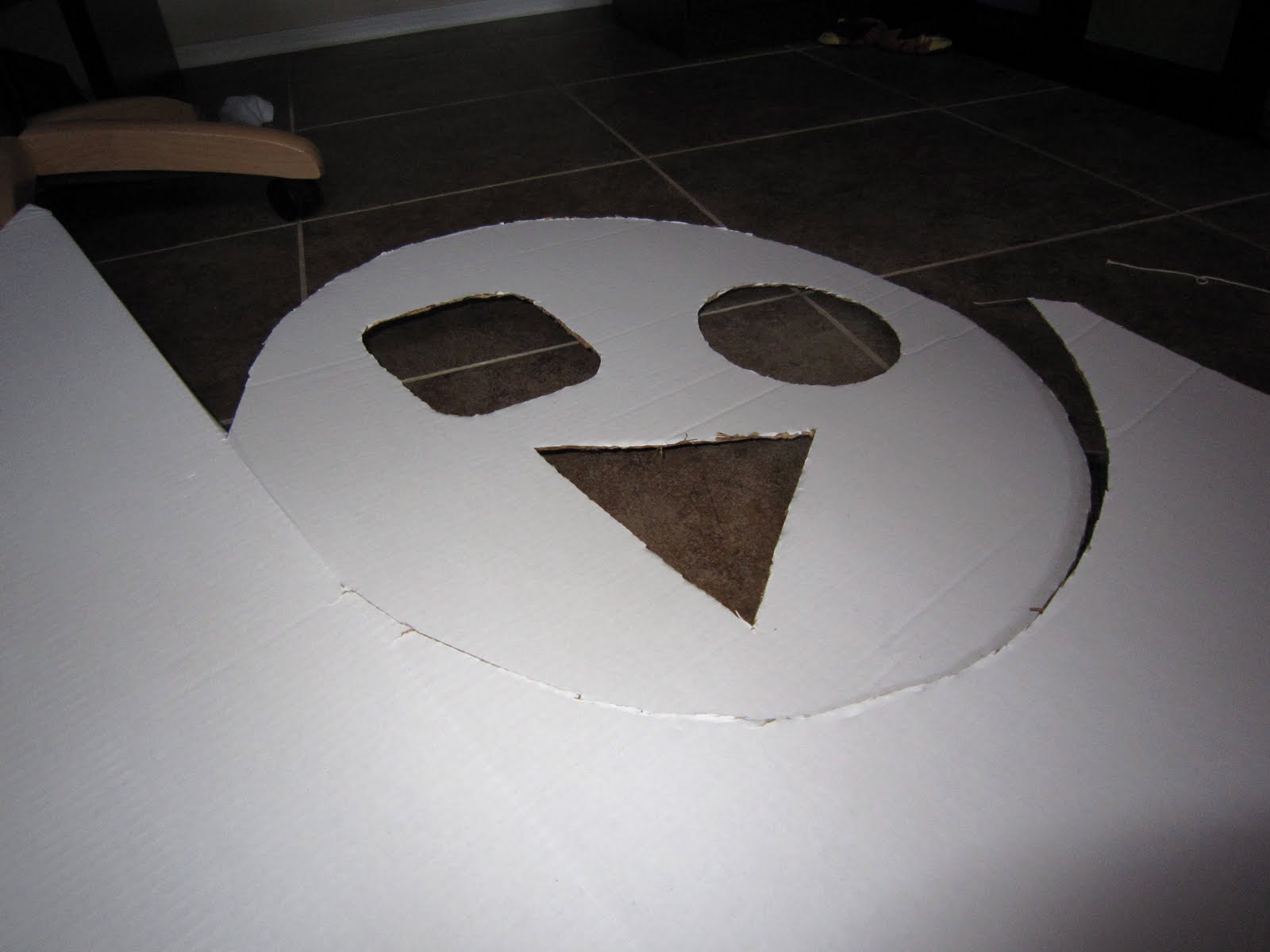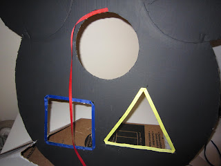 My perfectionist comes out when completing creative projects sometimes. In this case I didn’t want to spend $4 on a Tri-Fold board and completely mess up. I created a model out of printer paper and got creative and borrowed Aiden’s shape sorter for the cutouts