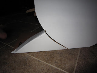8. With the flap you cutoff earlier trace and cutout 2 large circles (about 15 inches) for the ears. Paint the ears and attach using staples or Elmer’s extra strength Craft Bond. I found it easiest to paint the ears partially and then attach so I could paint over and cover up the staples.