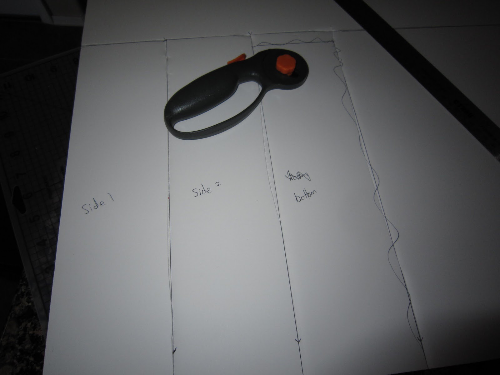 Elmer’s Foam Board. Using a box cuter or rotary cutter, cut to size. My cutter didn’t pierce both sides so I had to go back with scissors to