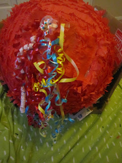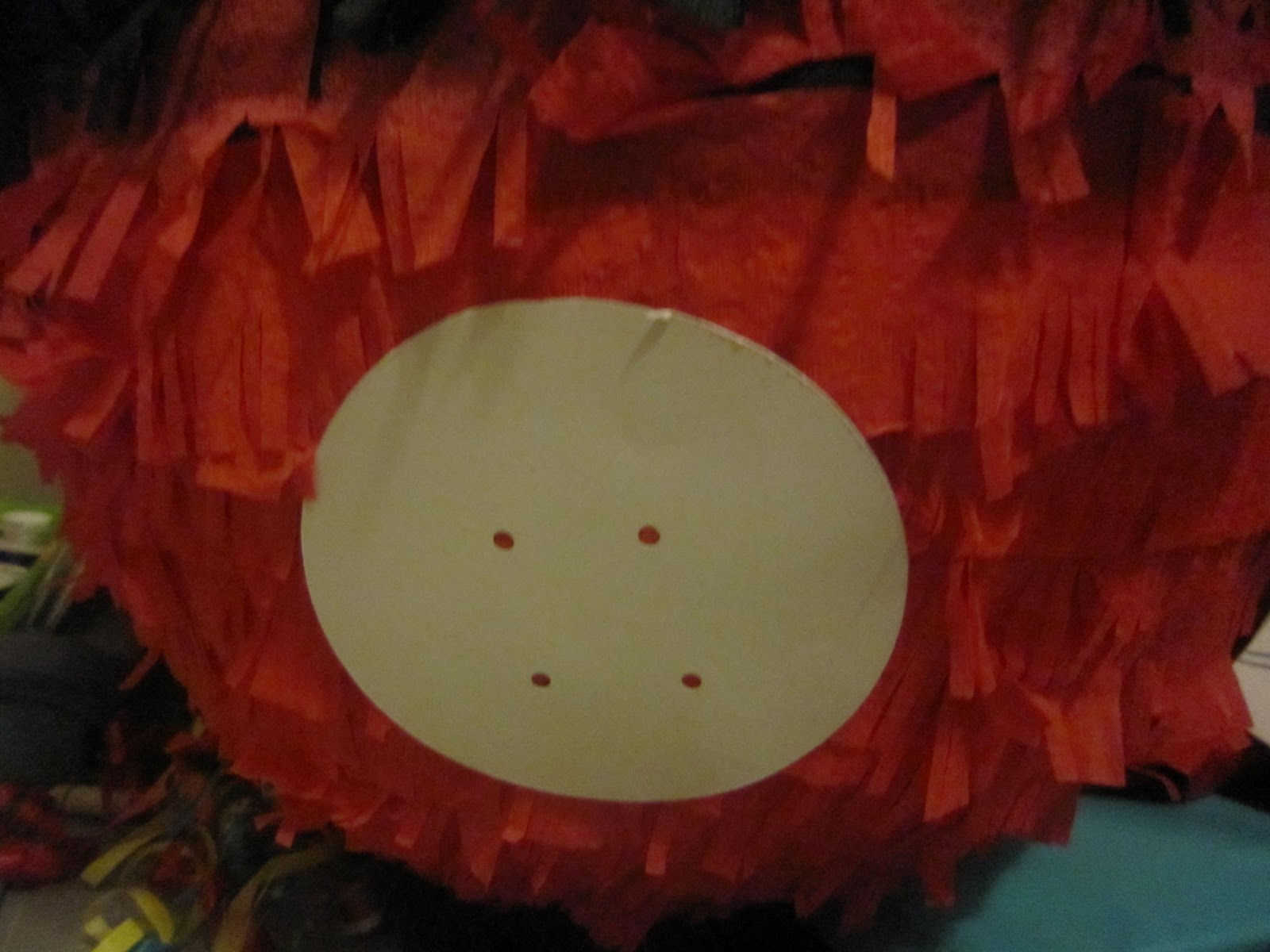 If you are doing a pull string piñata, punch a whole in your door before covering and attach a length of ribbon to it.